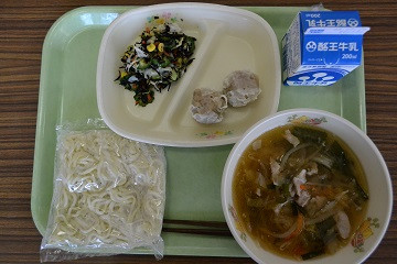 今日の給食は、「和食献立」です。ごはん・牛乳・さんまのおかか煮・磯和え・さつま汁です。568キロカロリーです。