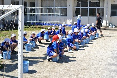 6学年の家庭科の授業です。トートバックの制作に取り組んでいます。ミシンを使って、一人一人自分用のトートバックを作っています。ミシンの使い方に習熟するには時間が必要ですが、お友達と協力しながら意欲的に取り組む姿が見られました。職場体験の中学生も子どもたちの支援に頑張っている様子が見られました。
